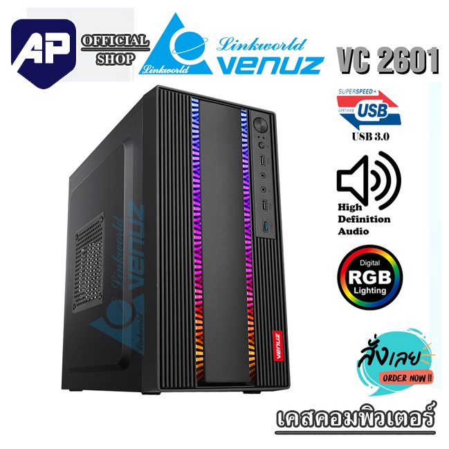CASE (เคสเกมมิ่ง) VENUZ ATX Computer Case VC2601 ไฟ RGB ประกัน 1ปี